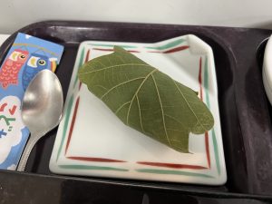 かつおのたたきやかき揚げ、柏餅、おやつの鯉のぼり、
