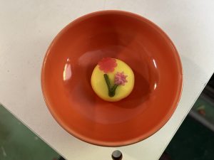 おやつにはバラの花の練り切りを提供しました!