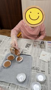 型に流し入れていきます。焼きあがるまでわくわくです😊