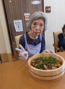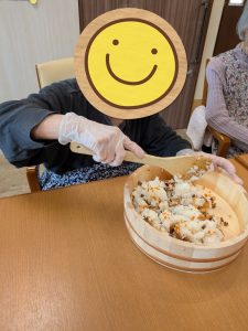 まずは酢飯を混ぜていきます。混ぜる人、酢飯を仰ぐ人で協力して作っていきます💪