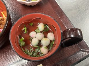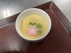 冷製茶碗蒸しには、カニカマ、枝豆、椎茸、かまぼこが