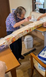 牛乳パックを使って特製流しそうめんを作りました。