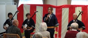 お客様も職員も津軽三味線に合わせて一緒に歌ったり、
