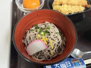 お蕎麦のトッピングはかまぼこ、葉ねぎ、柚子です。