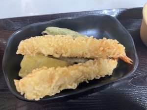 天ぷらには、海老、さつま芋、茄子、隠元を使用しました。
