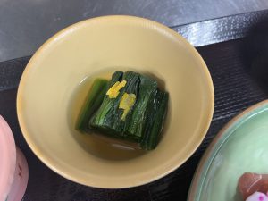 ほうれん草のお浸しには柚子を飾り付けることで、