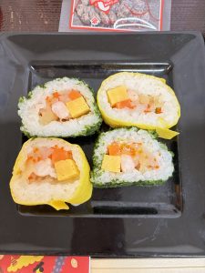 今年の方角は、南南東です。皆様も豆をまき、恵方巻を