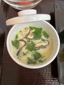 茶碗蒸しには、椎茸、三つ葉、鶏肉、
