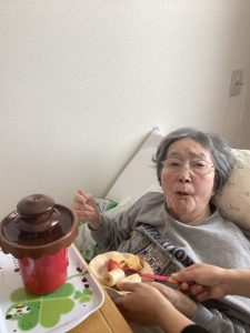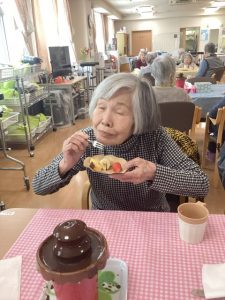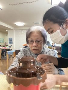 お客様も笑顔でチョコレートフォンデュに挑戦🍫